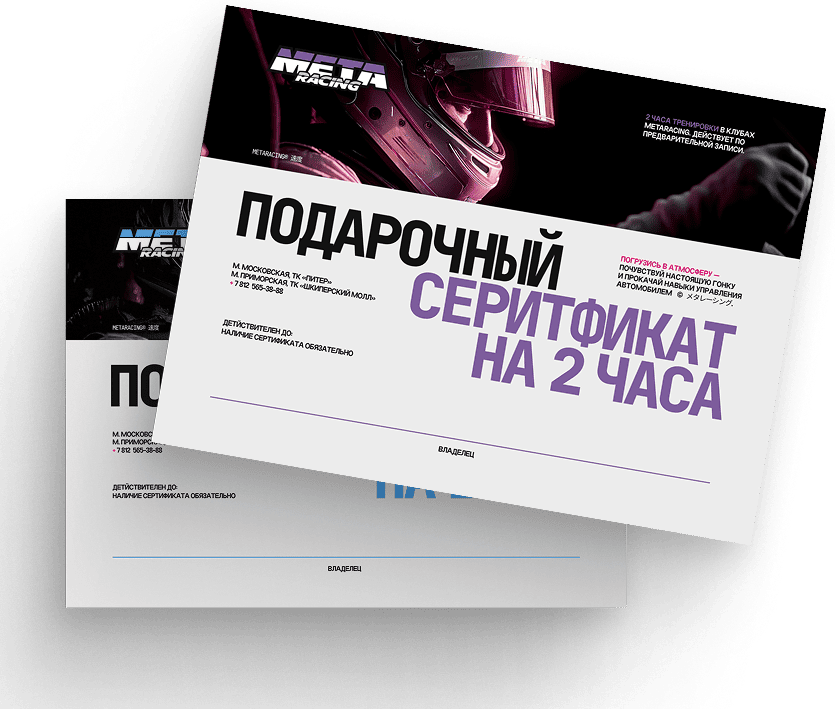 сертификат на незабываемые эмоции в клубах гоночных симуляторов MetaRacing.